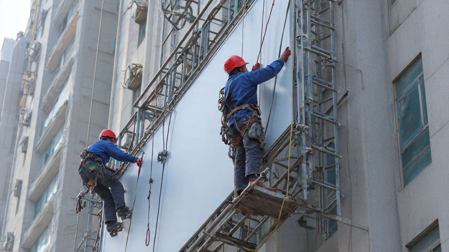 Signage on high rise commercial buildings costs more due to scaffolding, safety equipment, and electrical routing.